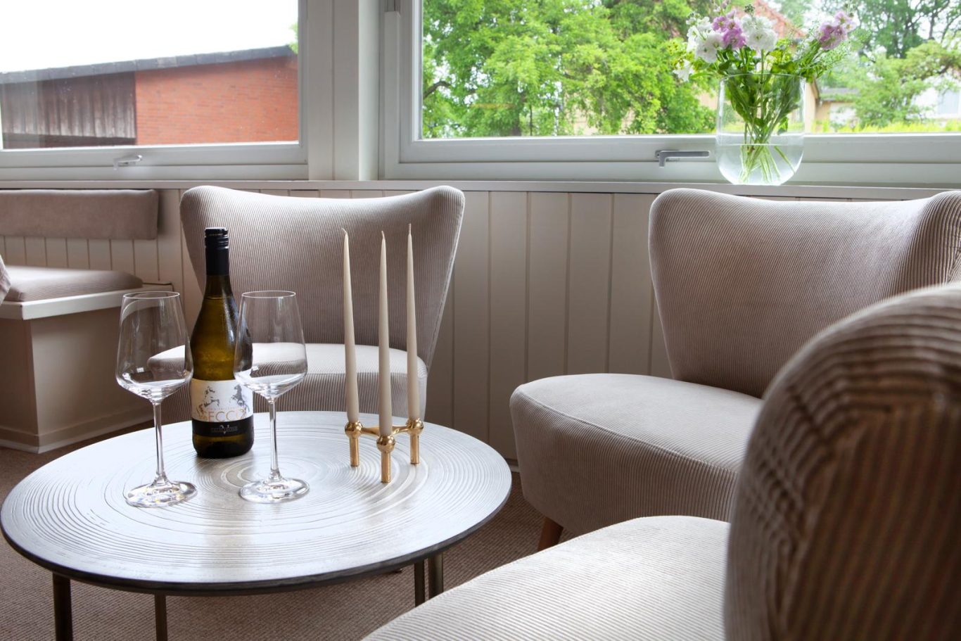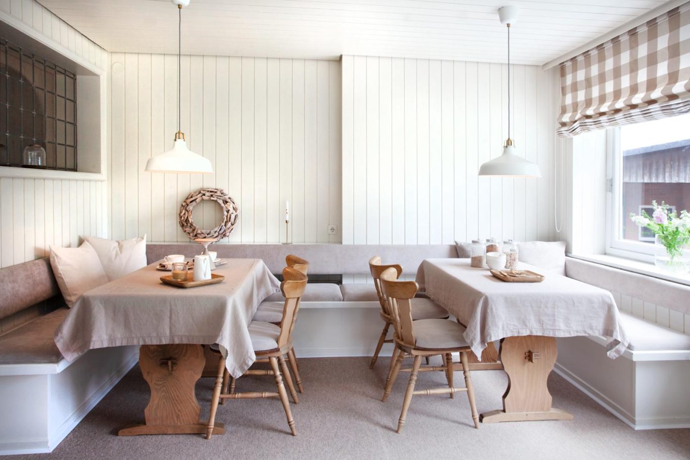 Ein heller Aufenthaltsraum steht den Gästen zur Verfügung.