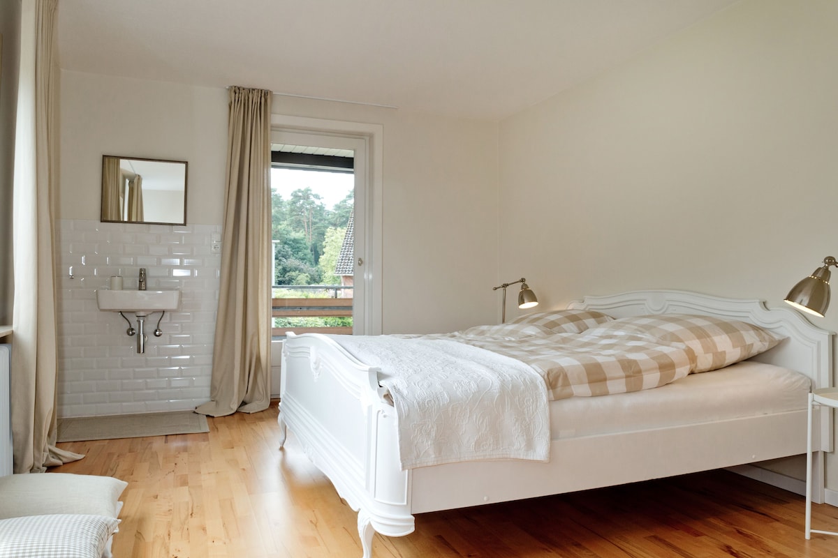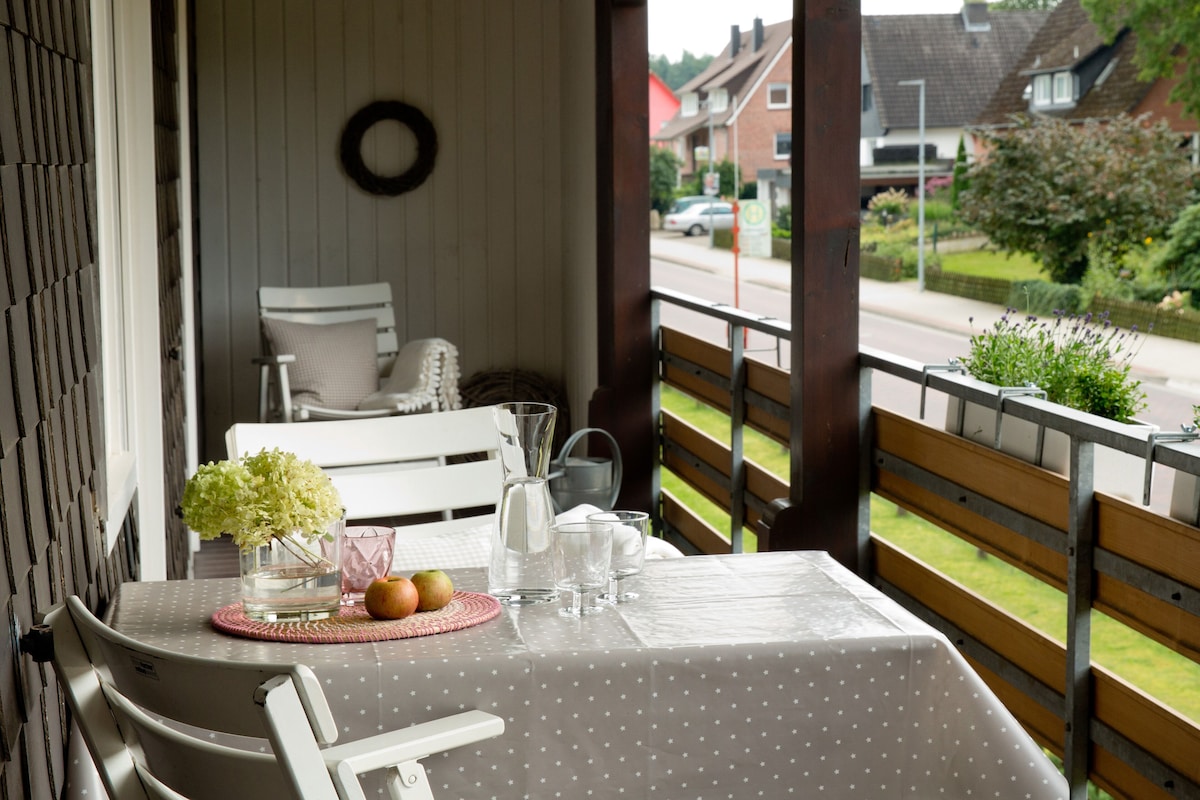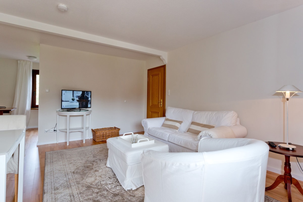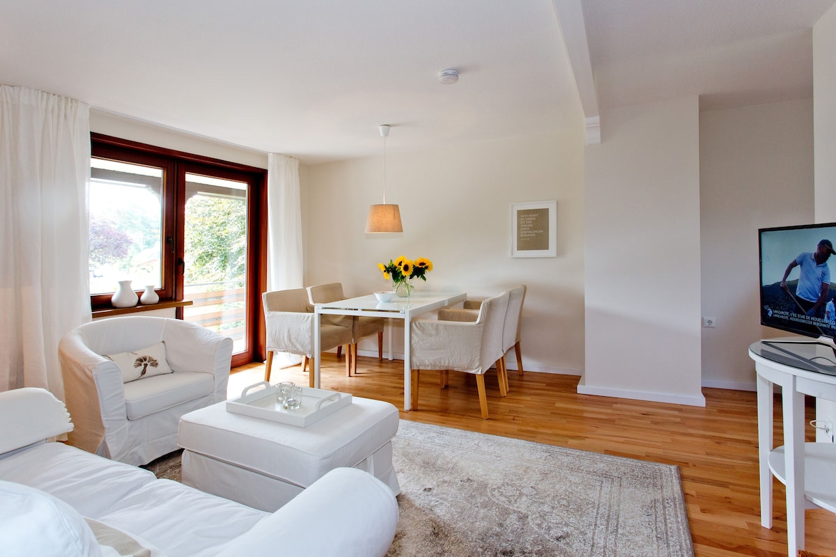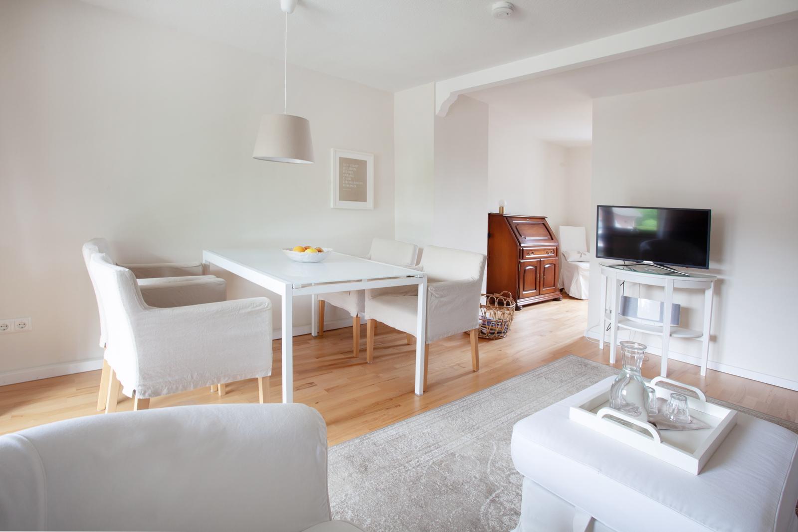 Die helle, großzügig geschnittene Ferienwohnung ist mit Buchenpaket ausgestattet.