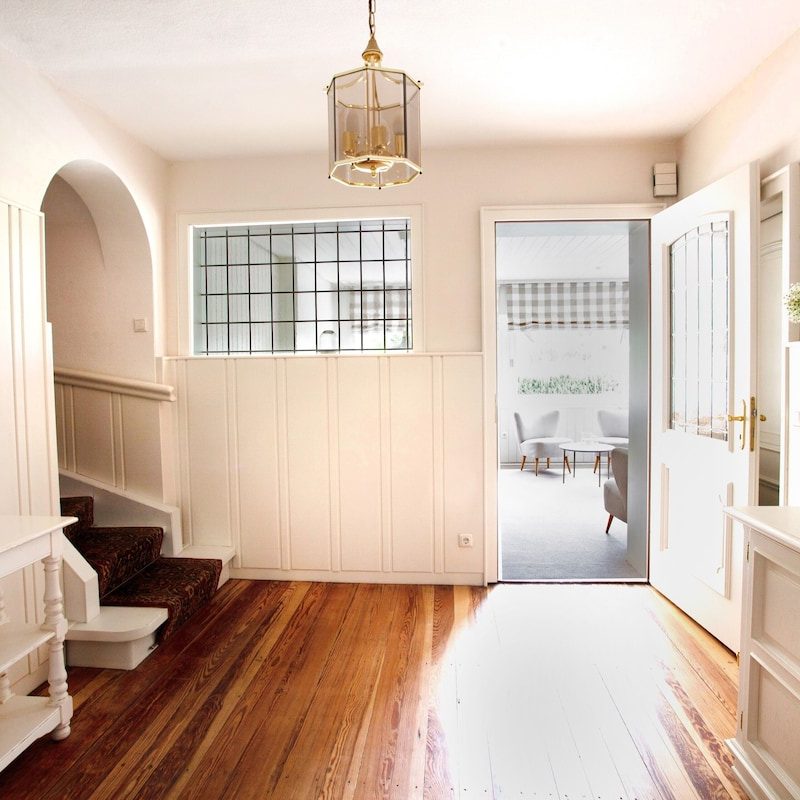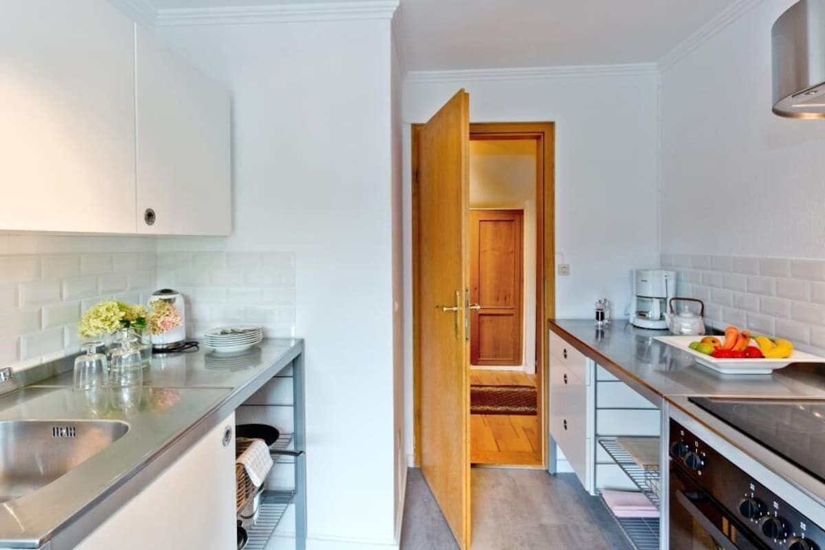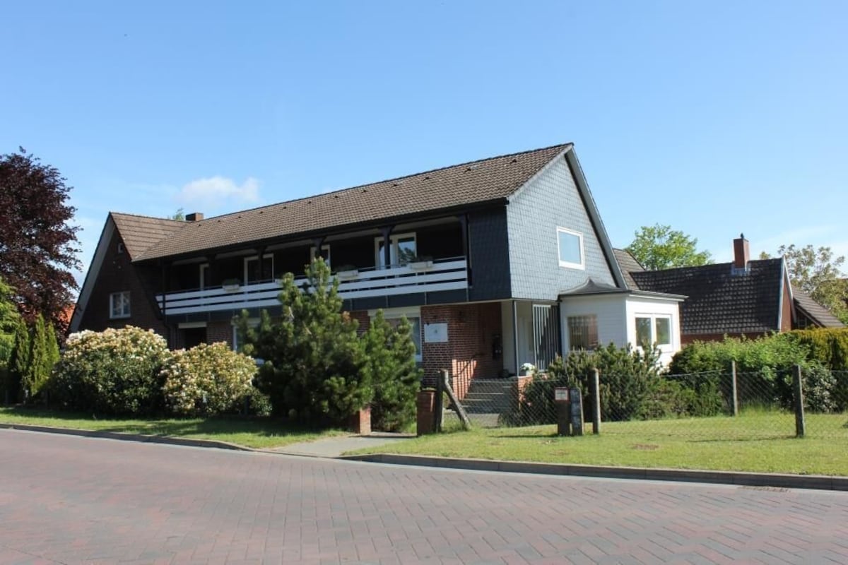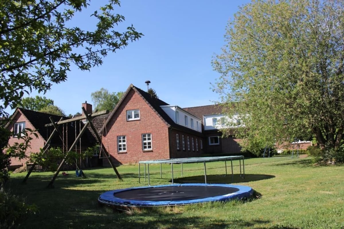 Ein geschmackvolles Wohn-Esszimmer sowie praktische Einbauschränke in Flur und Schlafzimmer sorgen für Komfort. Für Familien stehen ein Tripp-Trapp-Stuhl, ein Babybett und ein großer Garten bereit; Trampolin und Tischkicker befinden sich im Nebengebäude. Die Gastgeber wohnen separat auf dem Grundstück und sind bei Fragen jederzeit ansprechbar.